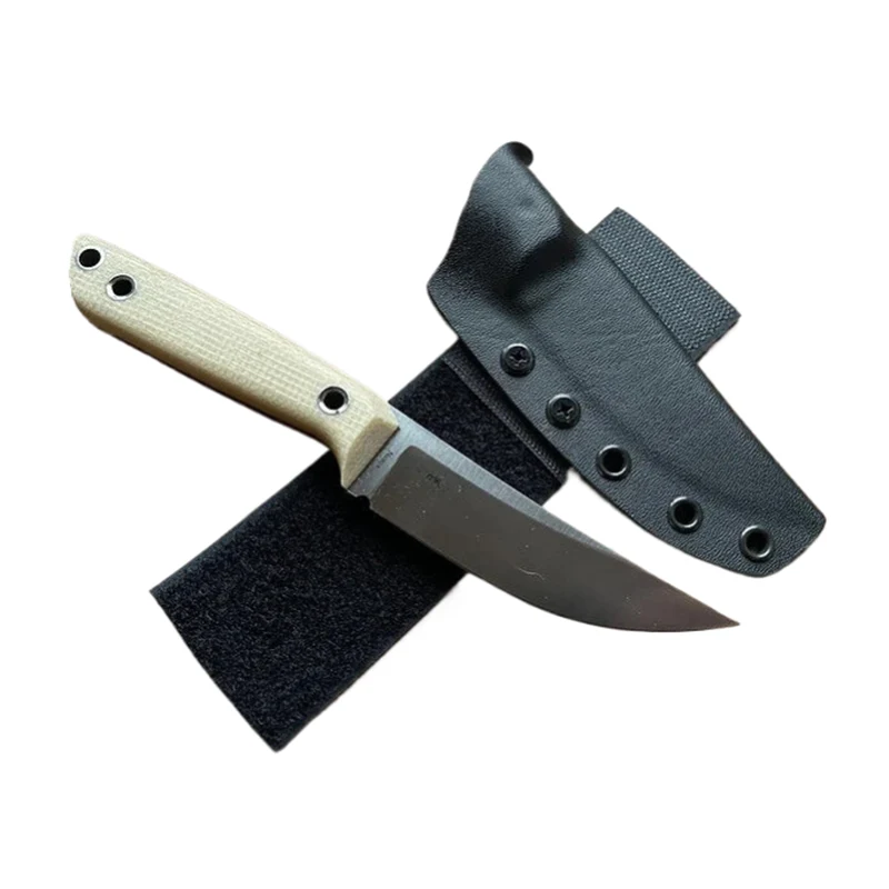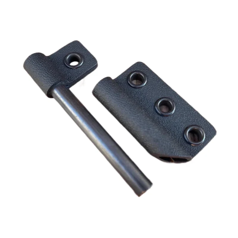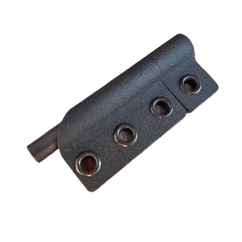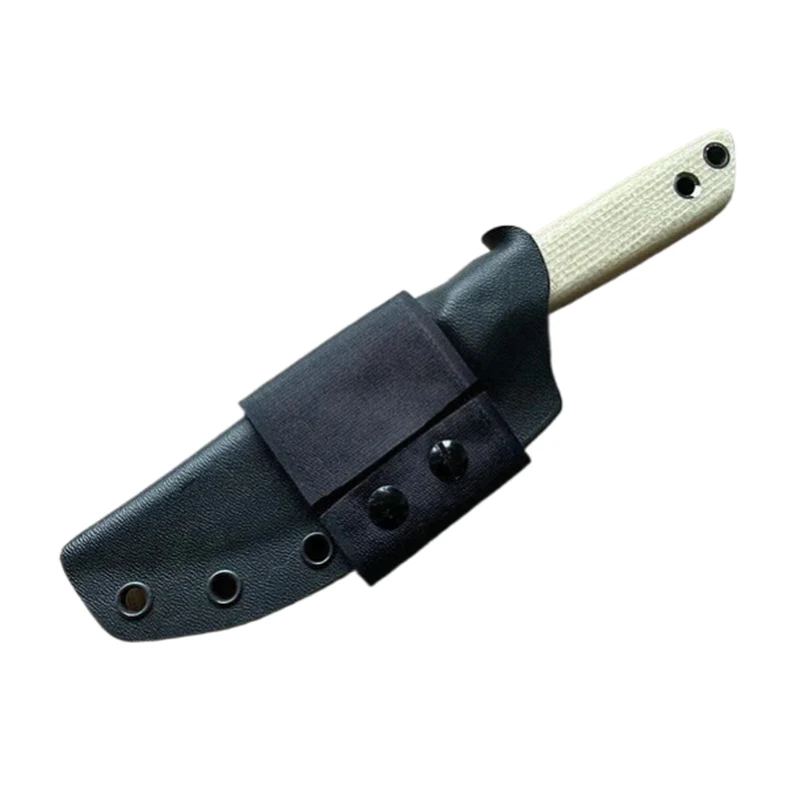 Jei norite peilį neštis kiek žemiau, rekomenduoju nailoninį dirželį su Kydex laikikliu. Velcro arba odinės kilpos puikiai tinka nešioti peilį per diržą. Velcro taip pat yra praktiškas sprendimas pritvirtinti peilį prie kuprinės dirželio. Be Kydex apvalkalo, galiu pritvirtinti priešgaisrinio plieno laikiklį, pasirinktinai su ugniai atspariu plienu (80 mm ilgio).