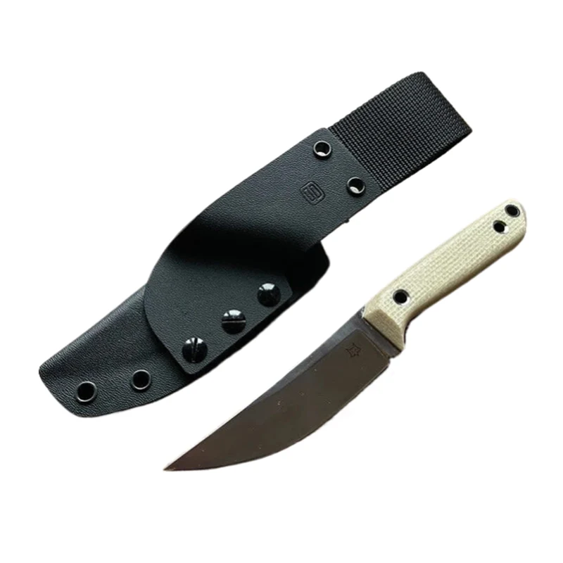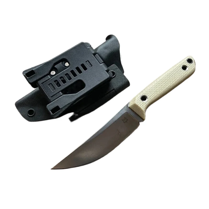 Profesionalus Kydex apvalkalas Fox batų peiliams. Gaminu Kydex apvalkalą naujam, grakščiam peiliui, kad jis puikiai tiktų. Peilis yra tvirtai įdėtas į apvalkalą, kad jį būtų galima nešti ir aukštyn kojomis (apvertus). Norėdami pritvirtinti peilį prie diržo klasikiniu būdu, horizontaliai arba vertikaliai, mano klientai dažniausiai renkasi Multi-Lok arba siaurą Velcro dirželį. Kydex batų peilius su apvalkalu galima įsigyti su ąselėmis vienoje pusėje ir ąselėmis iš abiejų pusių – nuo. Kamo raštai, kiti įvairiaspalviai raštai, anglies, krepšelio pynimo ar odos išvaizda, užsakymui pateikti naudokite kontaktinę formą.