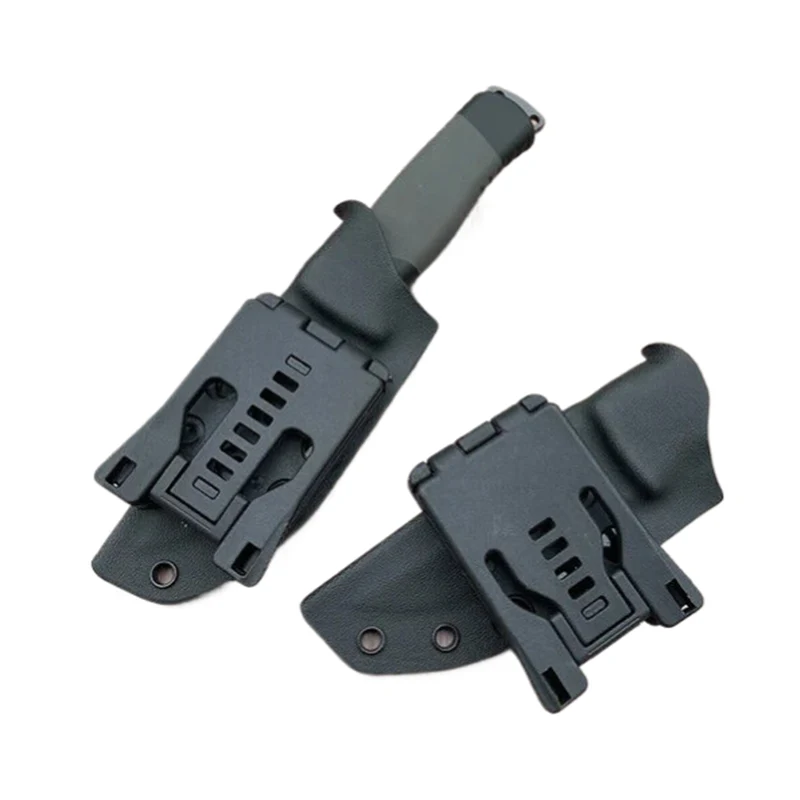 Norėdami lauko peilį pritvirtinti prie diržo tradiciniu būdu, horizontaliai arba vertikaliai, rekomenduoju Multi-Lok. Jei norite peilį neštis kiek žemiau, rekomenduoju segtuką su prailginimu. Velcro puikiai tinka nešioti peilį per diržą. Velcro taip pat yra praktiškas sprendimas pritvirtinti peilį prie kuprinės dirželio. Be peilio apvalkalo Kydex, galiu pritvirtinti ugniai atsparų plieninį laikiklį, pasirinktinai su ugniai atspariu plienu (80 mm ilgio). Galimos įprastos, prislopintos spalvos, tokios kaip: ruda, kojotų ruda, smėlio ir alyvuogių. Jei turite kokių nors pageidavimų dėl kitų spalvų, raštų, savo pageidavimų dėl savo Kydex apvalkalo ar klausimų man, tiesiog parašykite man.